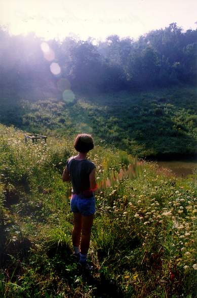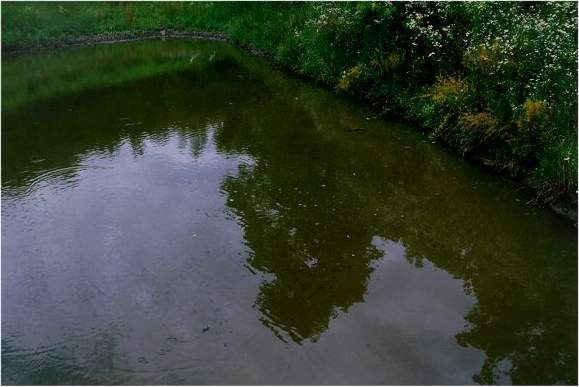 Look in the non-shadowed part of the watter. All those little dark spots are tadpols.
