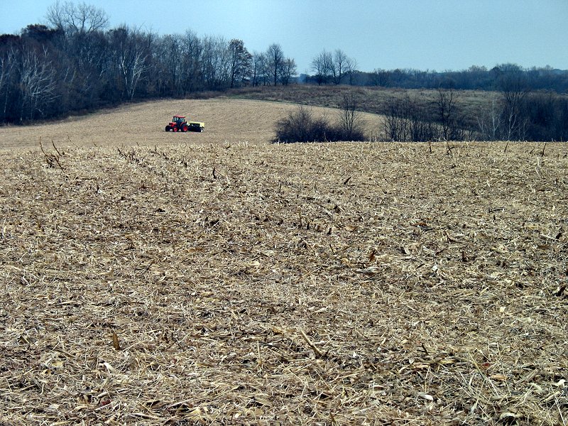 Fall 2002 -- Planting.. Several things are different. First, we are planting into corn stubble (and corn herbicide). And we borrowed a Truax seed drill from the DNR to do the planting. Much faster planting than our usual by-hand, into-snow seeding aproach, but we're not seeing as good results (at least in the early going - stay tuned for further updates).