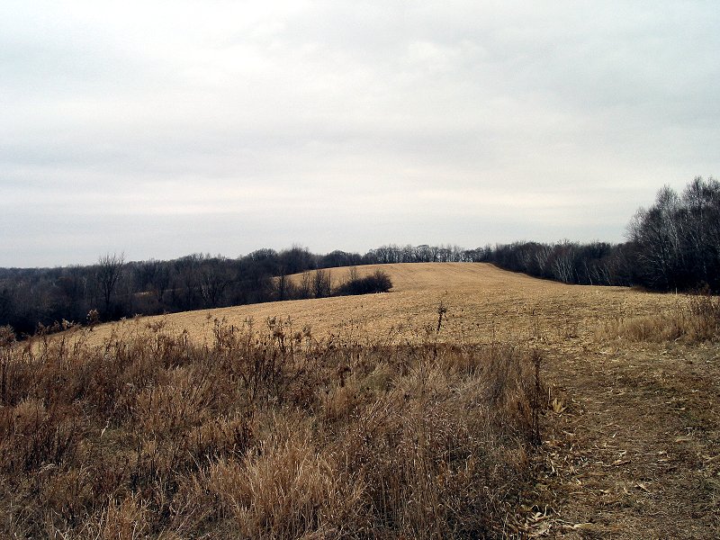 July 2003 -- A view of the field just after it's been mowed. Much different weed mix -- mostly grasses. Maybe due to different herbicide used on the corn? Not many prairie plants.