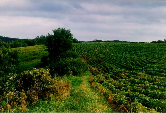 This is a view looking south (the Westward-view prairie is just over the horizen Late summer (those beans got off to a late start)..