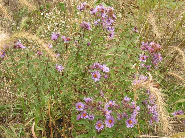 October 2002 -- we planted this field the same time we planted Center Valley. Here are Aster novae-angeliae and Wild Rye blooming. Mowed a couple times this summer