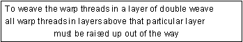 Exercise 5. Weave an inch using the fourth treadling order. Another one shuttle weave and only two treadles are required. The top layer is raised out of the way and