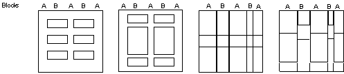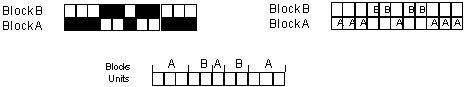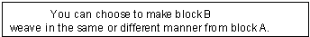 Warp weaving blocks are made of one or more warp units and are referred to as block A, B and so on.
