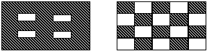 In the exercises with 8 shaft double weave, you should explore both design and color possibilities. At first stay with the same colors that you have in the warp. Then see what happens when you use opposite colors. The design can be varied in a number of ways. Two possibilities show how the proportions or the placement of the two blocks can be changed for either the window or checkerboard designs.