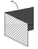 Notice how the layers have changed position in the center of this diagram. The light cloth layer is on top creating the "window". Another thing has happened. The central section has now been sealed off creating a tube in the warp direction that can be made as long as you want it to be. It can be be stuffed with insulating material or with a rod or dowel to support the weaving.