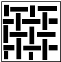 If you look at this diagram for a few minutes, you can convince yourself that the threads in the top layer, black, do not interlace with the threads of the bottom layer, white. Because of this the black threads are free to move together, hiding the white threads. Consequently a much better view of the weaving shows only the black threads of the top layer in a slightly expanded form to correspond to the previous diagram.