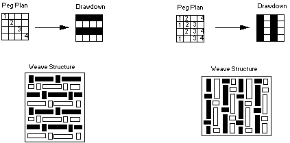 Figure 2. Peg Plan, Drawdown and Weave Structure