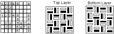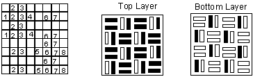 It is helpful to look at the first two grids from the tieup development in a slightly different fashion so that the drawdowns for the two layers can be presented separately. Remember the view is looking at the two layers from above. The top layer is discussed first.