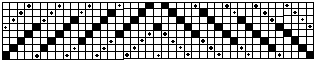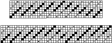 The finished weaving looks like the first of the next two diagrams when the grid lines and dots are erased. The second diagram shows the weave structure with the DLDL color order for both the warp and the weft.