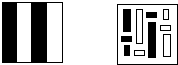 It is quite straightforward to make designs symmetical in the horizontal direction (through changes in the threading) or in the vertical direction (through changes in the treadling order or in the peg plan). Figure 4 repeats the information in figure 3 to show how symmetry can be achieved. For double weave note that it is necessary to have two extra threads so that errors do not occur in either the top or the bottom cloth layers. Similarly two extra treadlings or peg plans are required for the same reason. The extra threads and treadlings or peg plans have been separated to let you see more easily what happens before each of these is reversed to achieve symmetry.