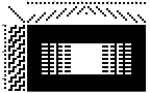 The threading to drawdown for the window design looks like this. Notice the different format in this approach. It is considerable work to put in a long list of peg plans. However there is a gain in design flexibility in that any of the 256 peg plans can be used and changed at will. The designs that result often have the curved forms so characteristic of network drafting designs.