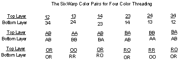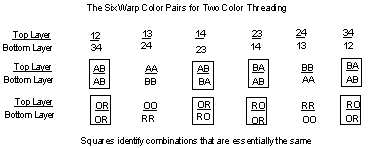 2a. Choose the color scheme you want for the warp and identify the shaft numbers and colors for the top layer and for the bottom layer.