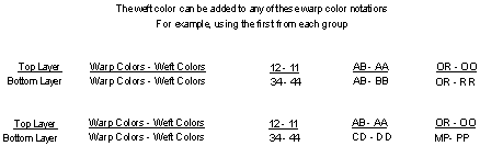 2b. Choose the color scheme you want for the weft and identify the weft pick numbers and the weft colors for the top layer and for the bottom layer.